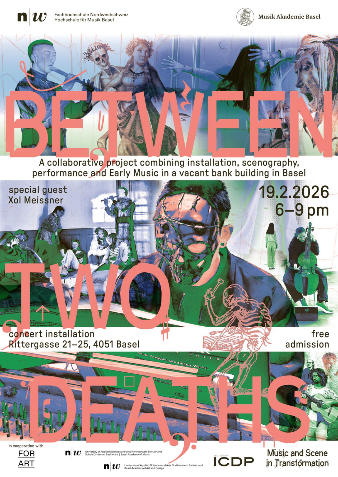 A collaborative project combining installation, scenography, performance and Early Music in a vacant bank building in Basel